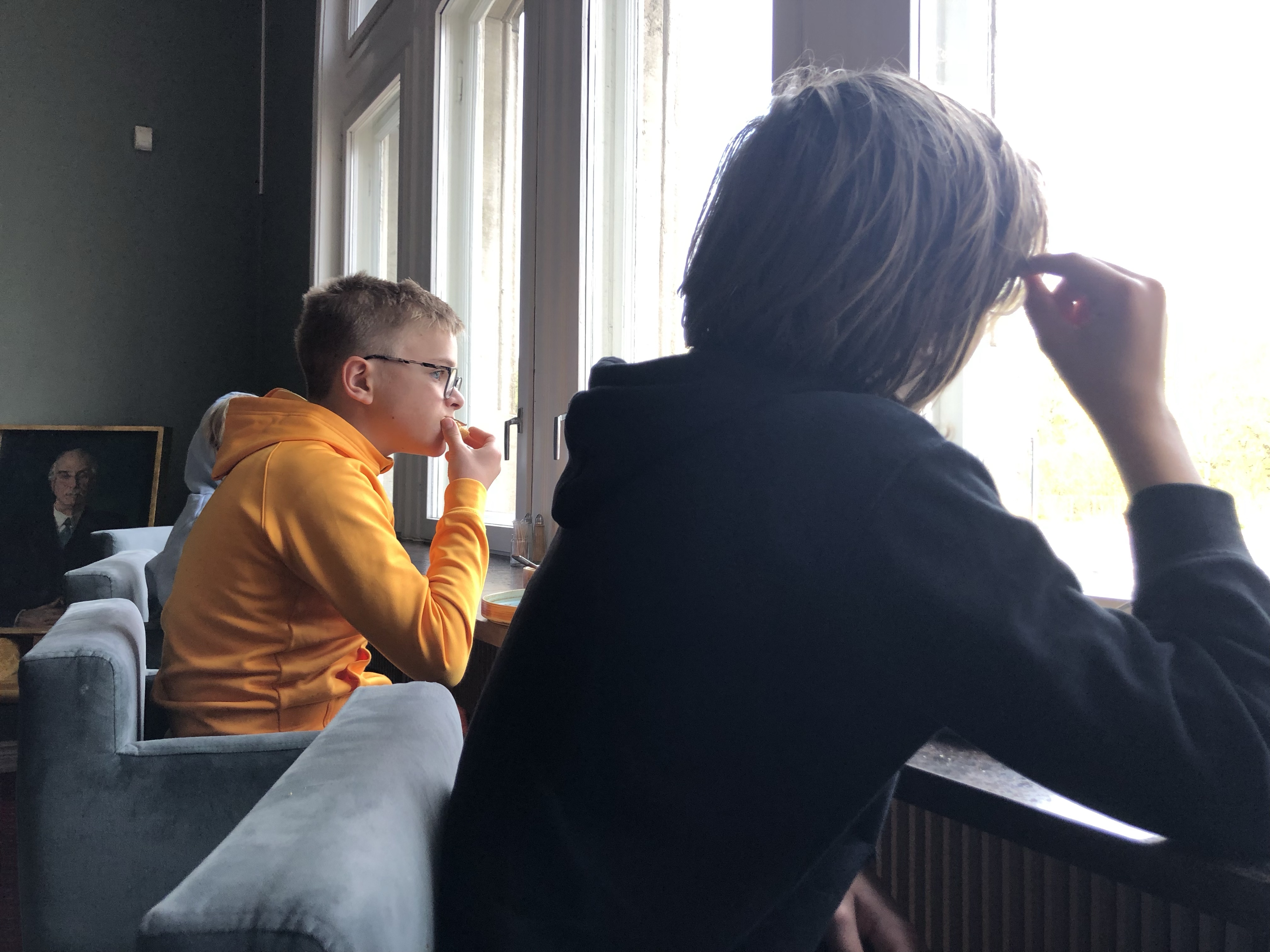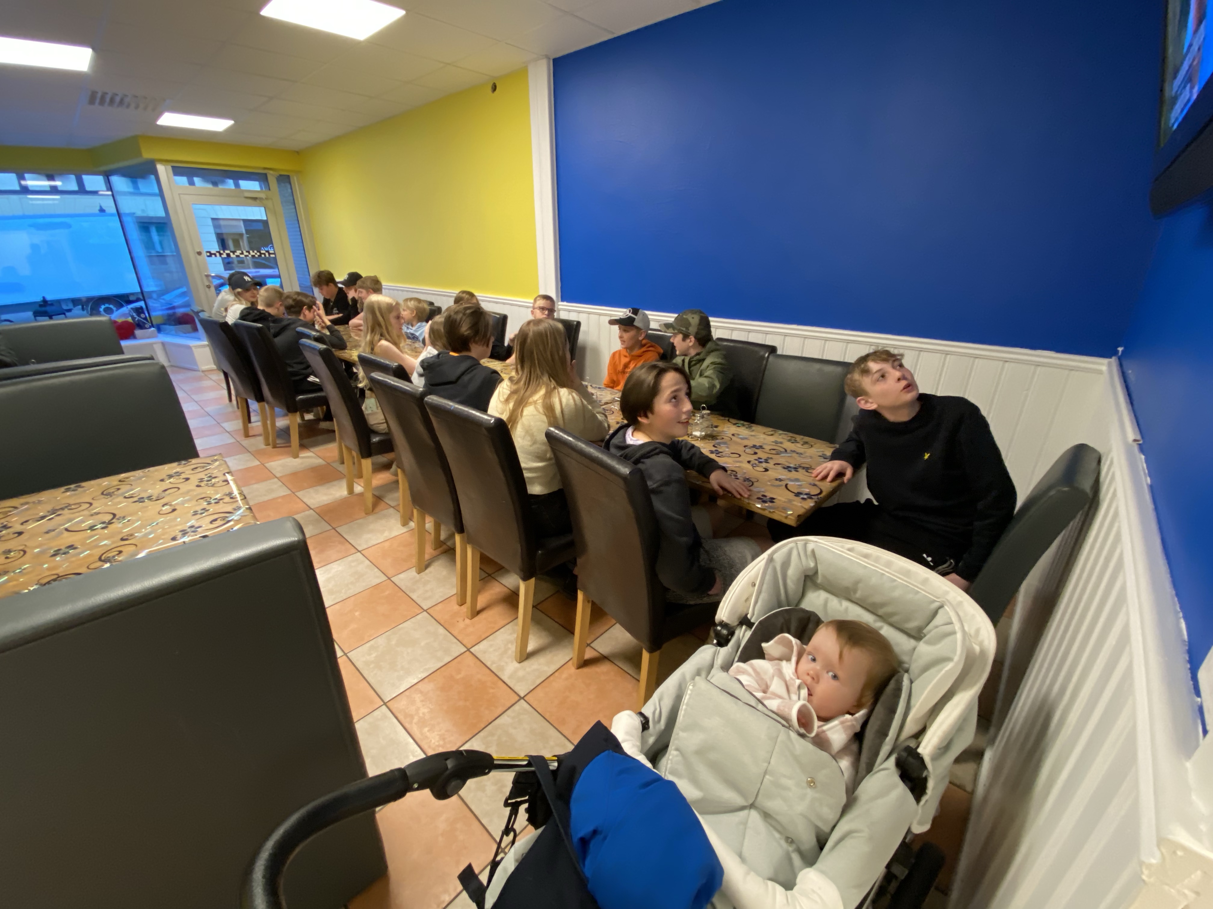 18barn och några ledare checkade in på hotellet innan vi gick till pizzerian för pizza-buffé.